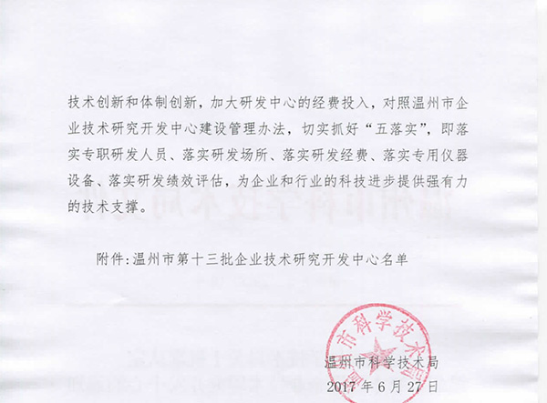 【喜訊】“王派生活用紙包裝機(jī)械研發(fā)中心”被溫州市科技局認(rèn)定為“溫州市級企業(yè)技術(shù)研發(fā)中心”,感謝領(lǐng)導(dǎo)專家的支持!感謝王派家人的努力付出!
