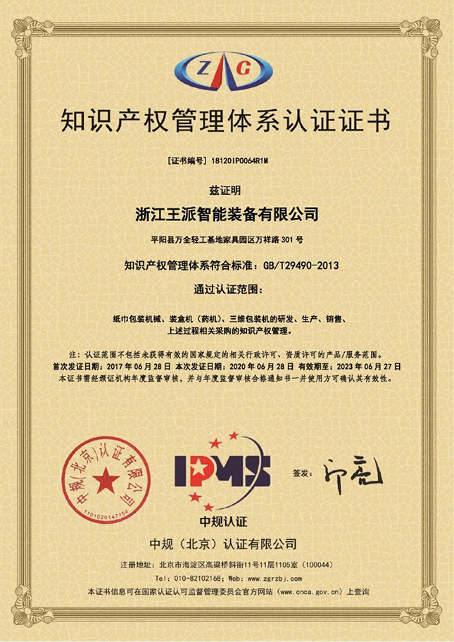 我司在2020年6月順利通過知識(shí)產(chǎn)權(quán)管理體系再認(rèn)證,獲得由中規(guī)(北京)認(rèn)證有限公司頒發(fā)的《知識(shí)產(chǎn)權(quán)管理體系認(rèn)證證書》。獲得此認(rèn)證標(biāo)志著公司在知識(shí)產(chǎn)權(quán)創(chuàng)造、運(yùn)用、管理和保護(hù)方面已建立并實(shí)施較完善的體系制度。